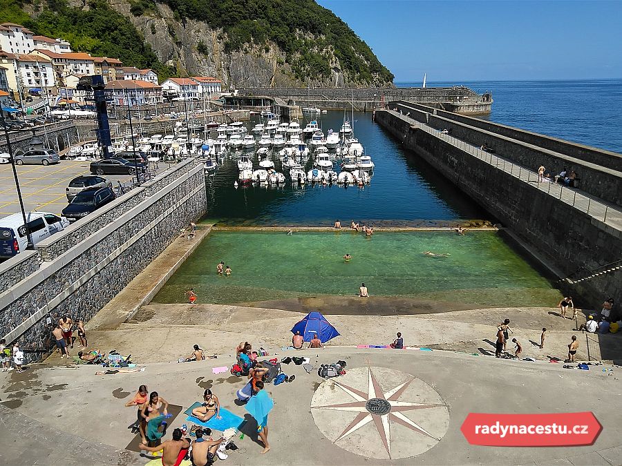 Nejen v Elantxobe najdete podobné chráněné bazénky pro prázdninové skotačení.