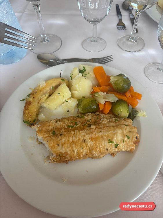Oběd byl společný pro celou skupinu, a to v podobě ryby espady. Což je typická ryba pro Madeiru, kombinace s banánem byla lehce zvláštní, ale chutnala skvěle.
