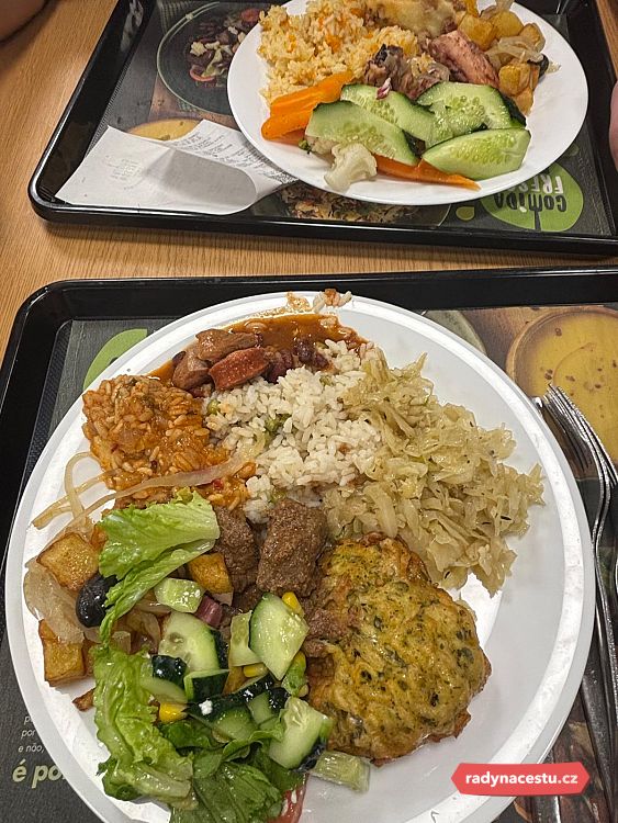 Vše mi trpělivě vysvětlila, dala mapu města a poradila, kam si zajít na dobré a levné jídlo. Skvělý tip byl supermarket Pingo Doce, který se nacházel asi 200 m od hotelu – kromě klasického nákupu je tam i bufet, kde si naberete, co chcete, a zaplatíte podle váhy. Dva talíře dobrot, pivo a voda za cca 15 eur? Perfektní začátek!