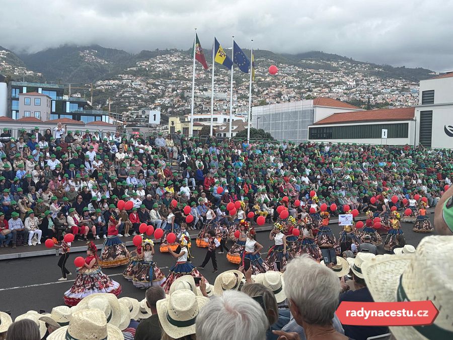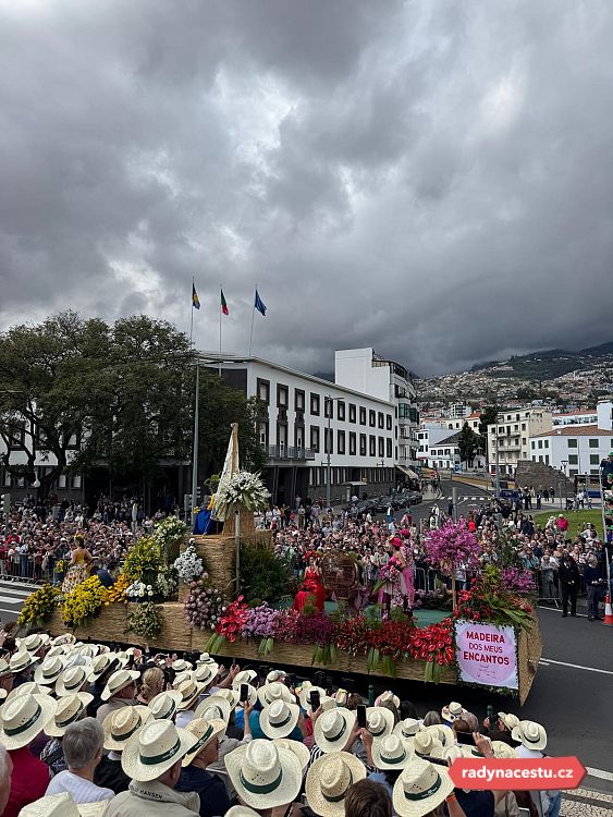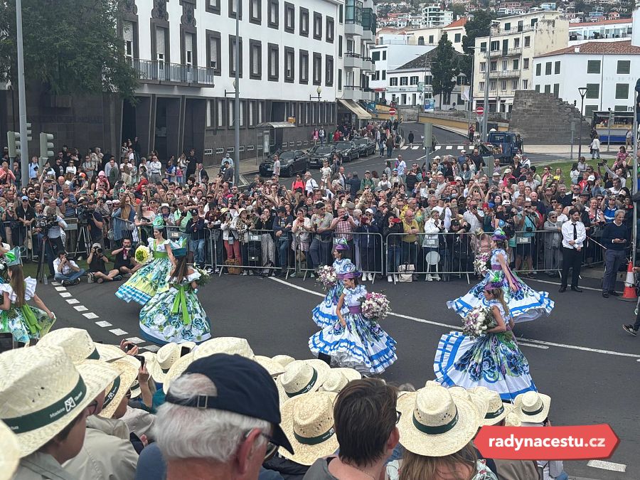 Pak už jsme se vydali na to hlavní – Květinový festival. Asi 50minutovou procházkou jsme dorazili do centra Funchalu, kde to už žilo. Ulice byly plné lidí, barevných stánků, hudby a vůně květin. Sedli jsme si na tribunu, kde jsme měli rezervovaná místa, a dostali vodu a klobouk proti slunci. A pak to začalo.