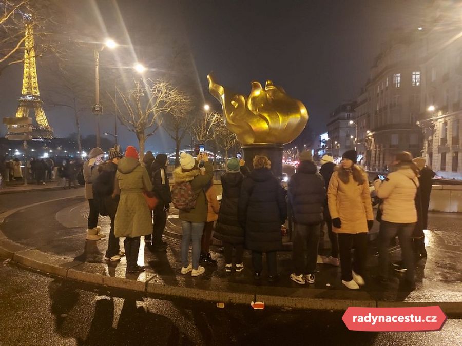 Další den jsme ráno začali návštěvou jednoho z nejznámějších symbolů Paříže – Eiffelovy věže. Ti, kdo se chtěli podívat na město z výšky, si mohli zakoupit vstupenku do třetího patra a kochat se pohledem na celou Paříž.
