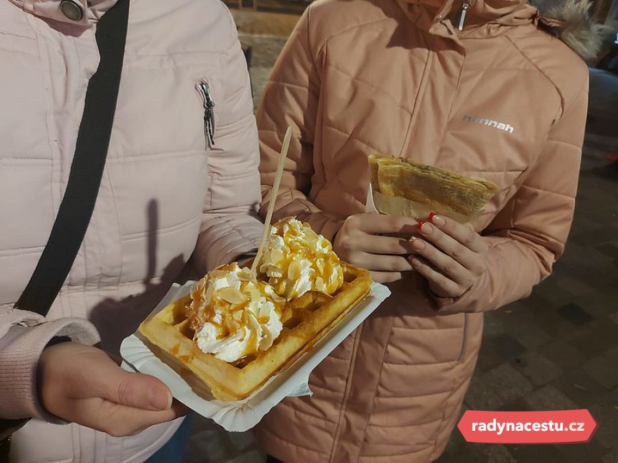 Cestou jsme potkávali stánky s voňavým jídlem, vánočními ozdobami a suvenýry a do uší se nesla hudba z tradičních vánočních trhů.