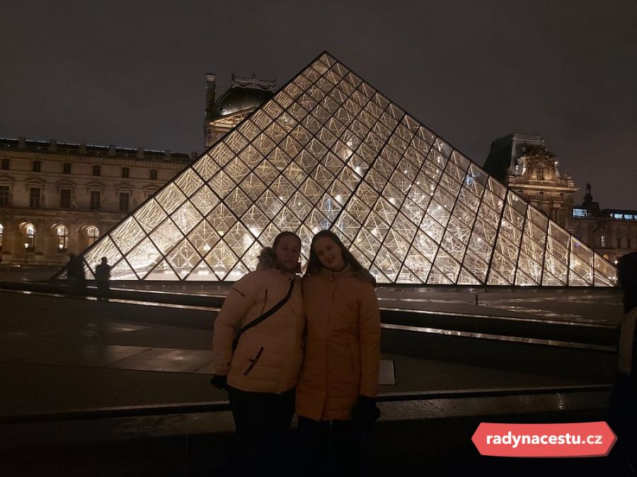 Neodolali jsme ikonickým fotografiím u slavné skleněné pyramidy a malého Vítězného oblouku, odkud se otevírá cesta až k Place de la Concorde.