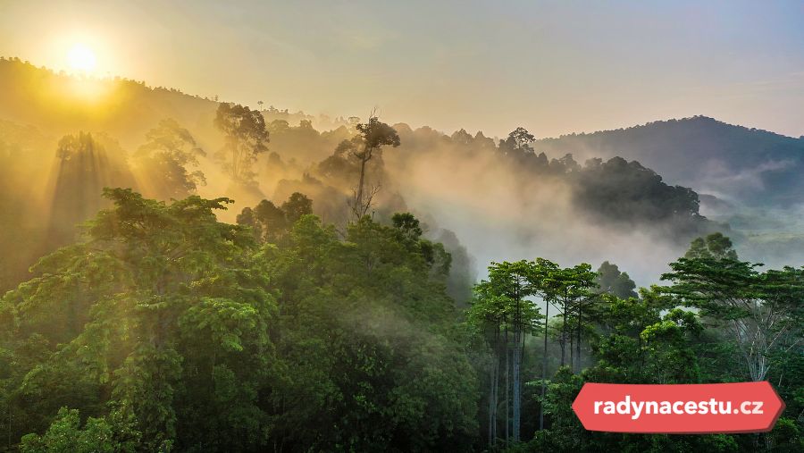 Úchvatný pohled na deštný prales Bornea při východu slunce