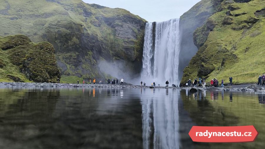 Cestovatelé Radynacestu obdivují vodopád na Islandu