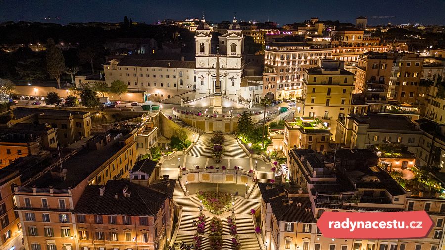 Noční pohled na slavné Španělské schody v Římě