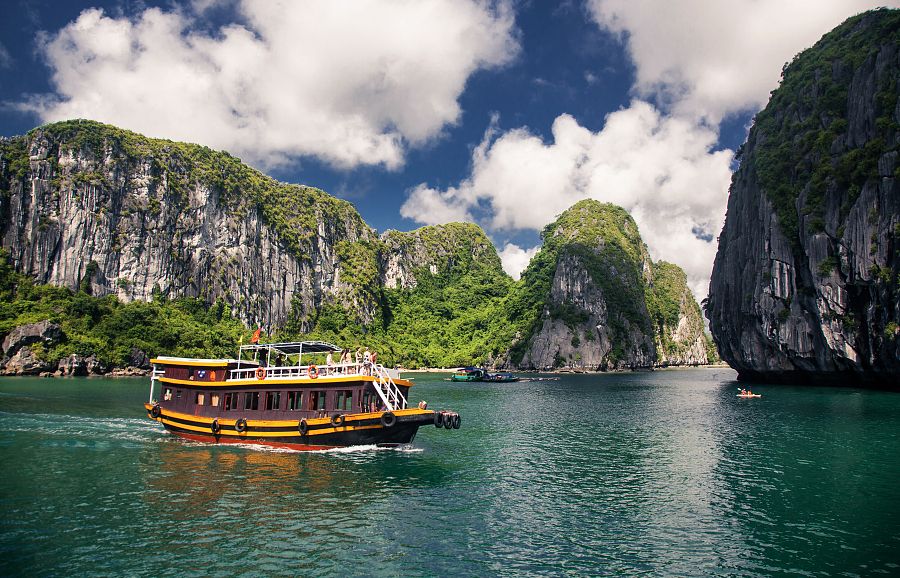 Plavba tradiční vietnamskou lodí zátokou Ha Long Bay s obědem a večeří z místních pokrmů – v ceně zájezdu