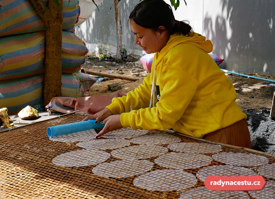 Místo výroby poznáte snadno, protože celý dvůr je vždy obložen obrovskými síty, na kterých se suší rýžové kotouče. Rýžový papír známe hlavně díky rýžovým závitkům, a pokud se dostanete přímo do výrobny, neodejdete bez ochutnávky. Pro zájemce se také dá nahlédnout do továrny na výrobu rybí omáčky, která je velmi oblíbená nejen v Kambodže.