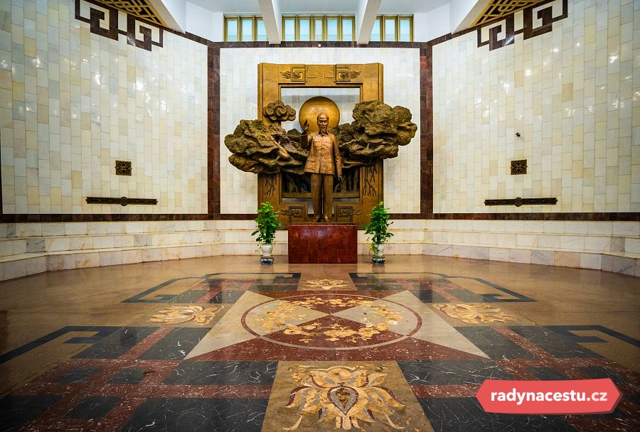 Interiéru hlavní vstupní haly dominuje impozantní socha Ho Či Mina. Z bronzu, v nadživotní velikosti. „Strýčka Ho“ zpodobňuje v klidném postoji s mírným úsměvem – působí zde spíš jako duchovní průvodce než politický vůdce. Na tomto místě se určitě budete potřebovat vyfotit.