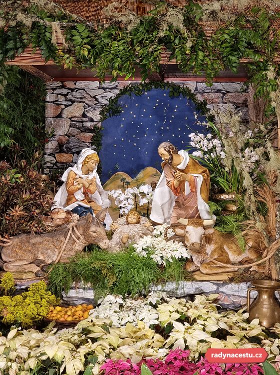 V jesličkách schovaných v malé jeskyni leží Ježíšek. Dále se rozmístí různé ovoce jako pomeranče, hrušky, jedlé kaštany a oříšky. Zelenou barvu dávají betlému stromy a tráva vyrobená z čerstvého osení. Na miniaturních políčkách roste kapusta, brambory a další zelenina. Je to, jako když se díváte na zmenšeninu ostrova.