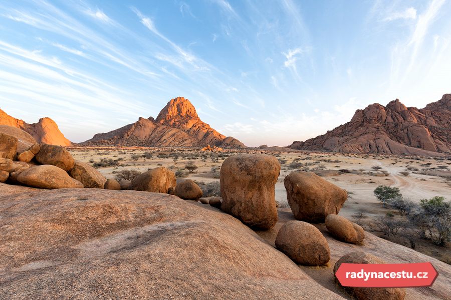 Úterý 28. července: Čeká nás skutečný namibijský unikát. Vypravíme se ke Spitzkoppe, ikonickým žulových obrům v poušti Namib. Prozkoumáme také skalní umění Sanů a pořídíme jedinečné fotografie.