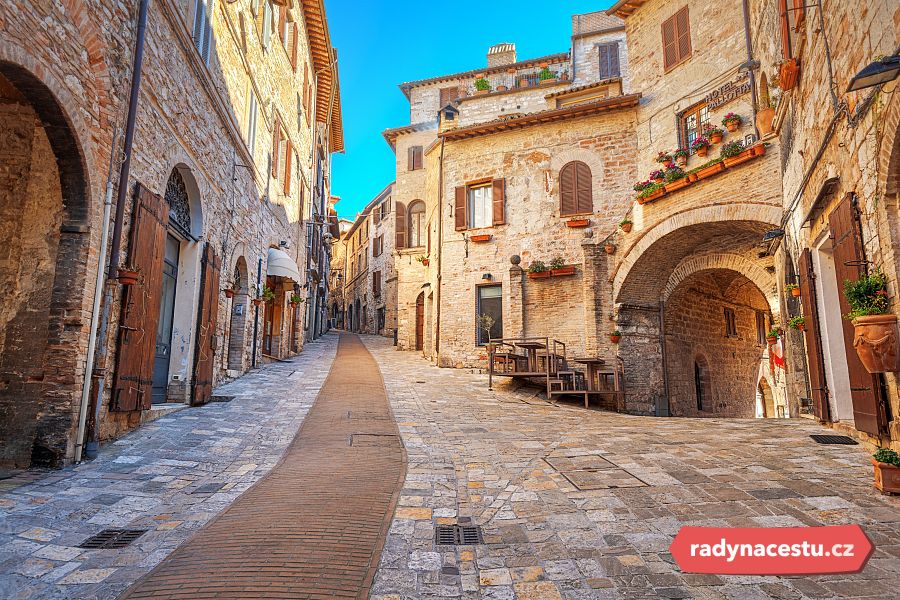 Romantické uličky italského městečka Assisi – rodiště sv. Františka