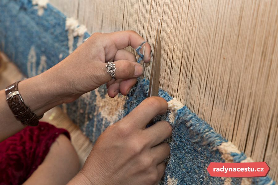 Ukázka tkaní látek ve výrobně hedvábí v Margilanu