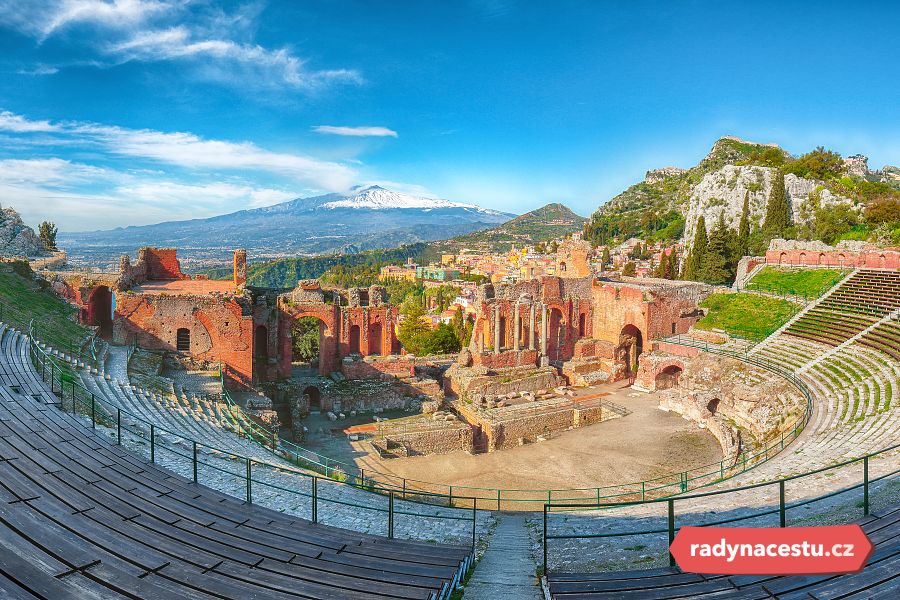 • Výhled na Etnu z Řeckého divadla v Taormině